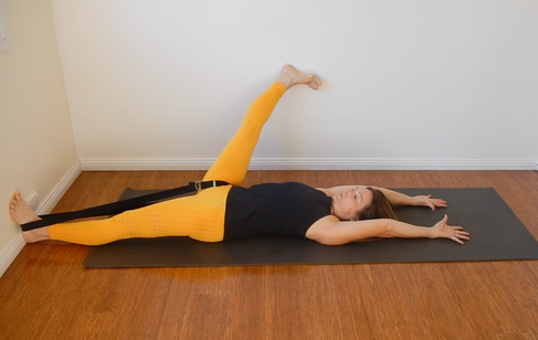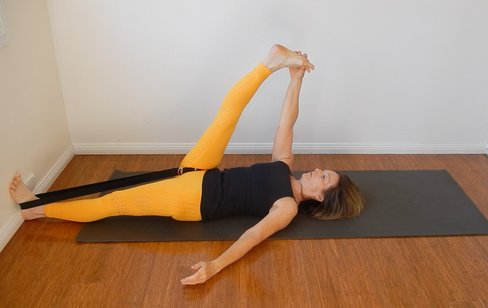 It often feels right to incorporate into my practice some hip stretches and the Hand to Big Toe - foot to wall variation (Supta Padangusthasana 2) allows me to stay there for a while.